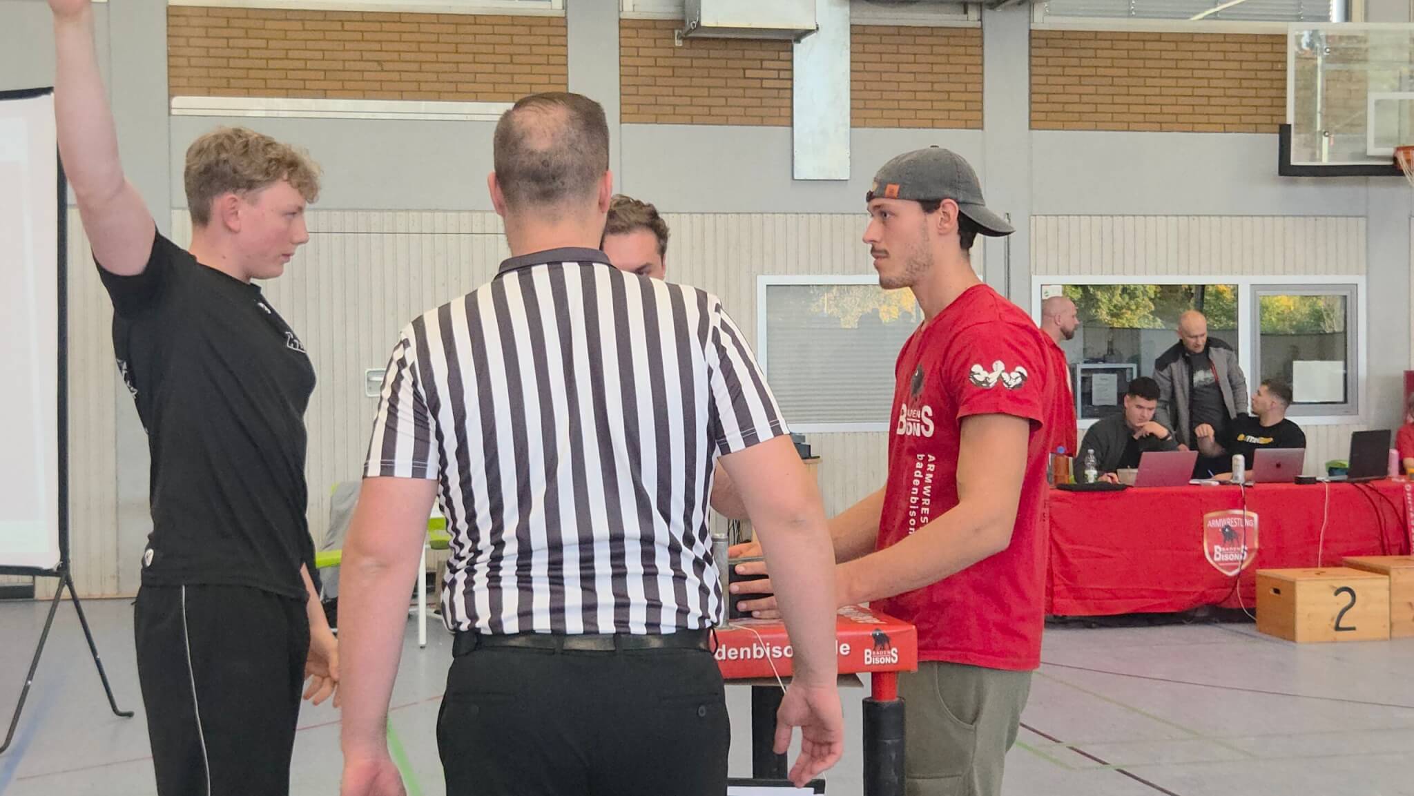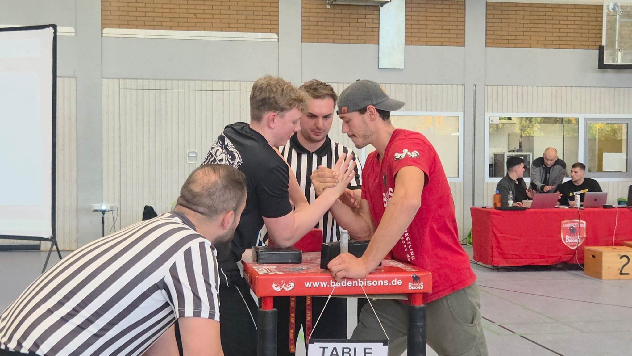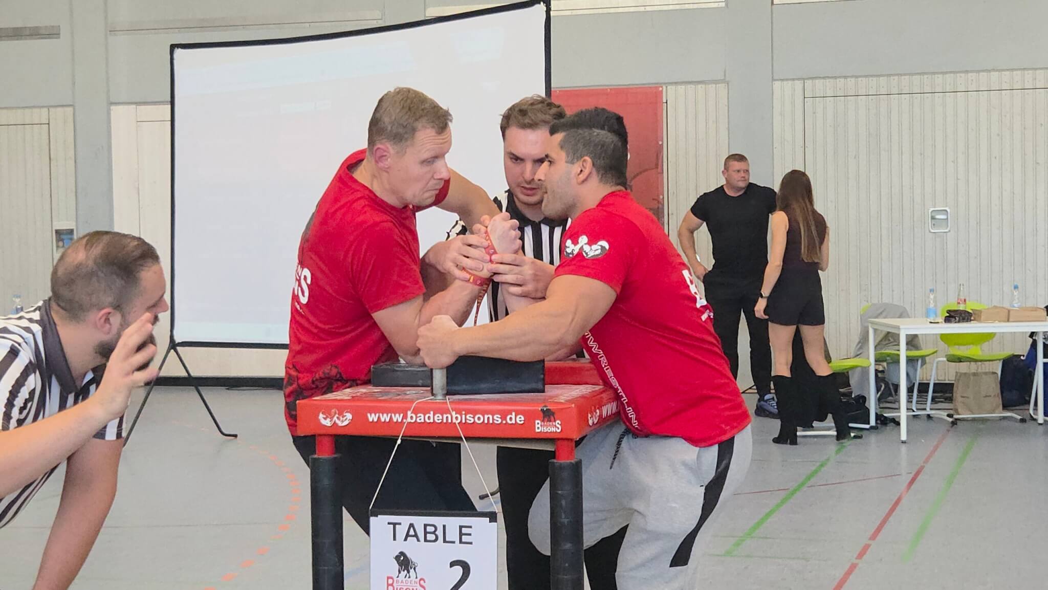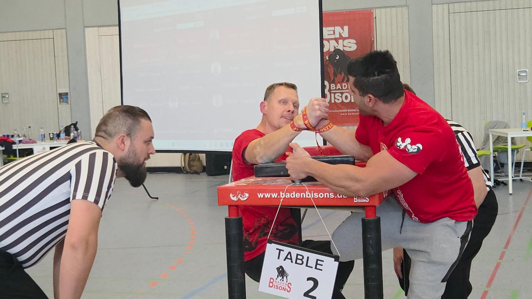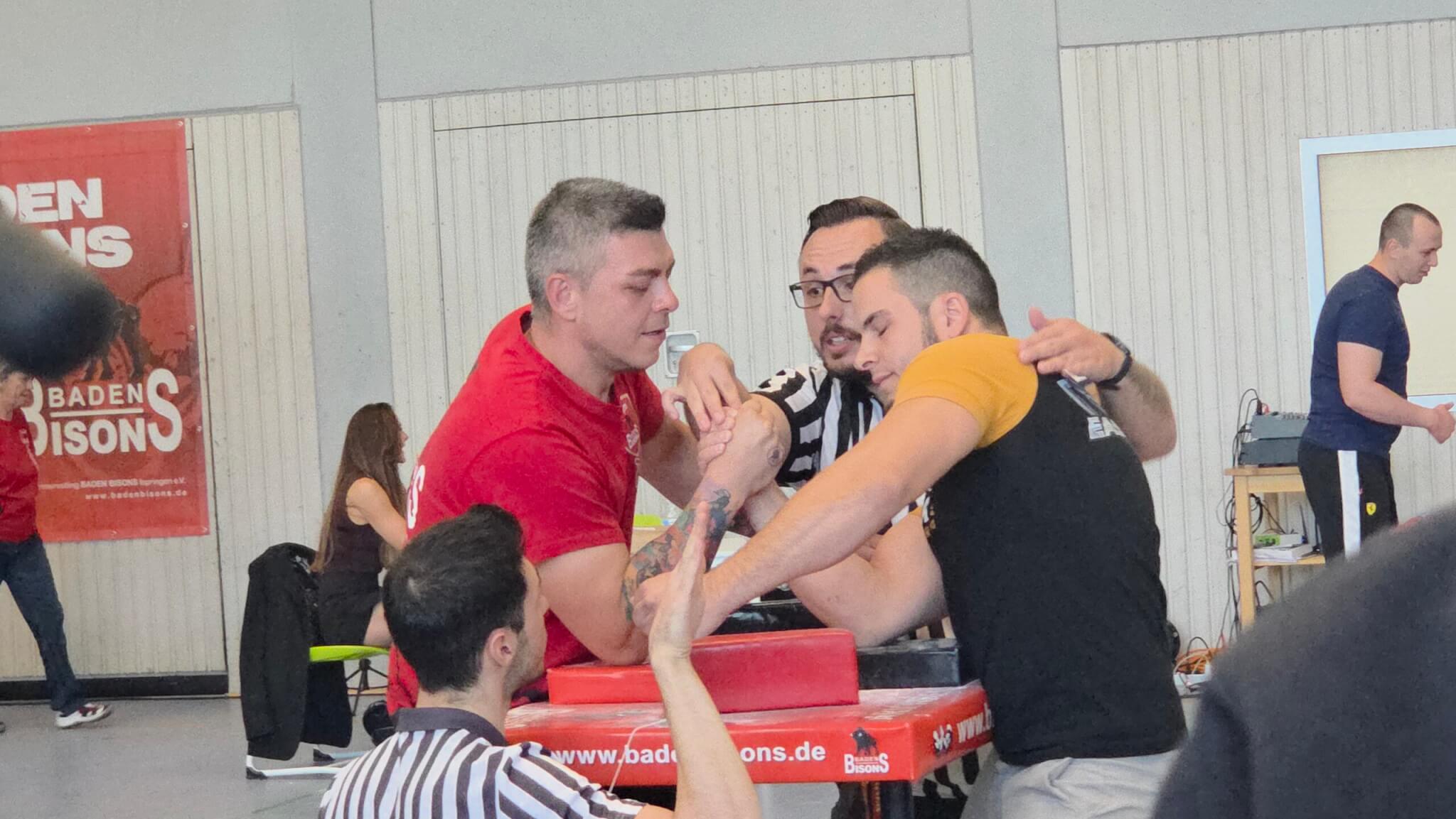 In Ispringen war am 18.10.2025 hochkarätiges Armwrestling geboten – bei unserem diesjährigen BADEN BISONS CUP II. Athleten aus 12 Nationen traten bei den Wettkämpfen an. Sie gaben alles, um einen begehrten Platz auf dem Podest zu erreichen. Als Special Guest war aus Polen Kamil Jablonski angereist, einer der stärksten und bekanntesten Armwrestler. Für die Anwesenden ein Hightlight, denn man hatte als Athlet die Chance, mal zu schauen, wieviel man noch trainieren muss, um annähernd so stark zu sein, wie er. Die Stimmung war elektrisierend. Das Publikum wurde mit spannenden und interessanten Wettkämpfen belohnt.